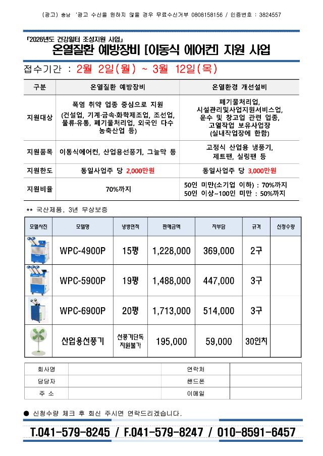 온열질환 예방장비 접수: 2026. 02. 02(월) ~ 03. 12(목)