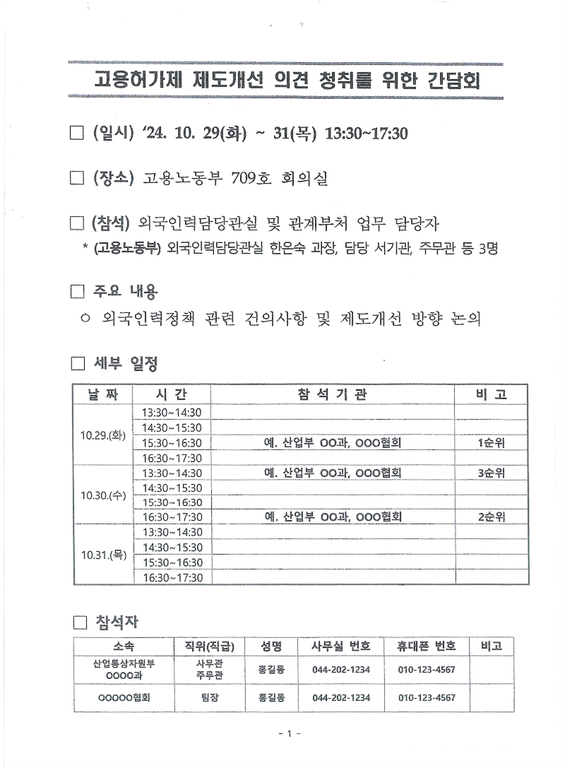 고용허가제 제도개선 의견 청취를 위한 간담회 - 고용노동부